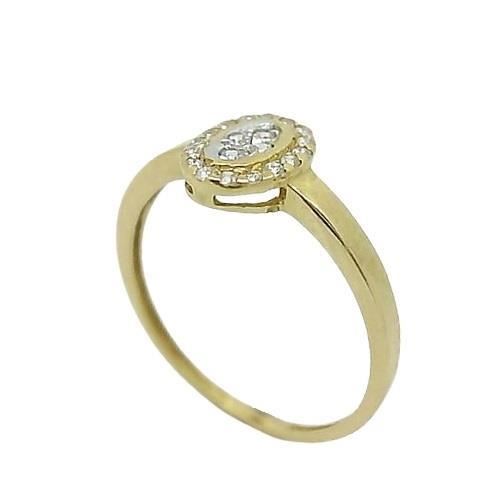 Sortija Oro Amarillo y Blanco de 18 quilates con circonitas, motivo de 8mm. Opción de pendientes a juego.