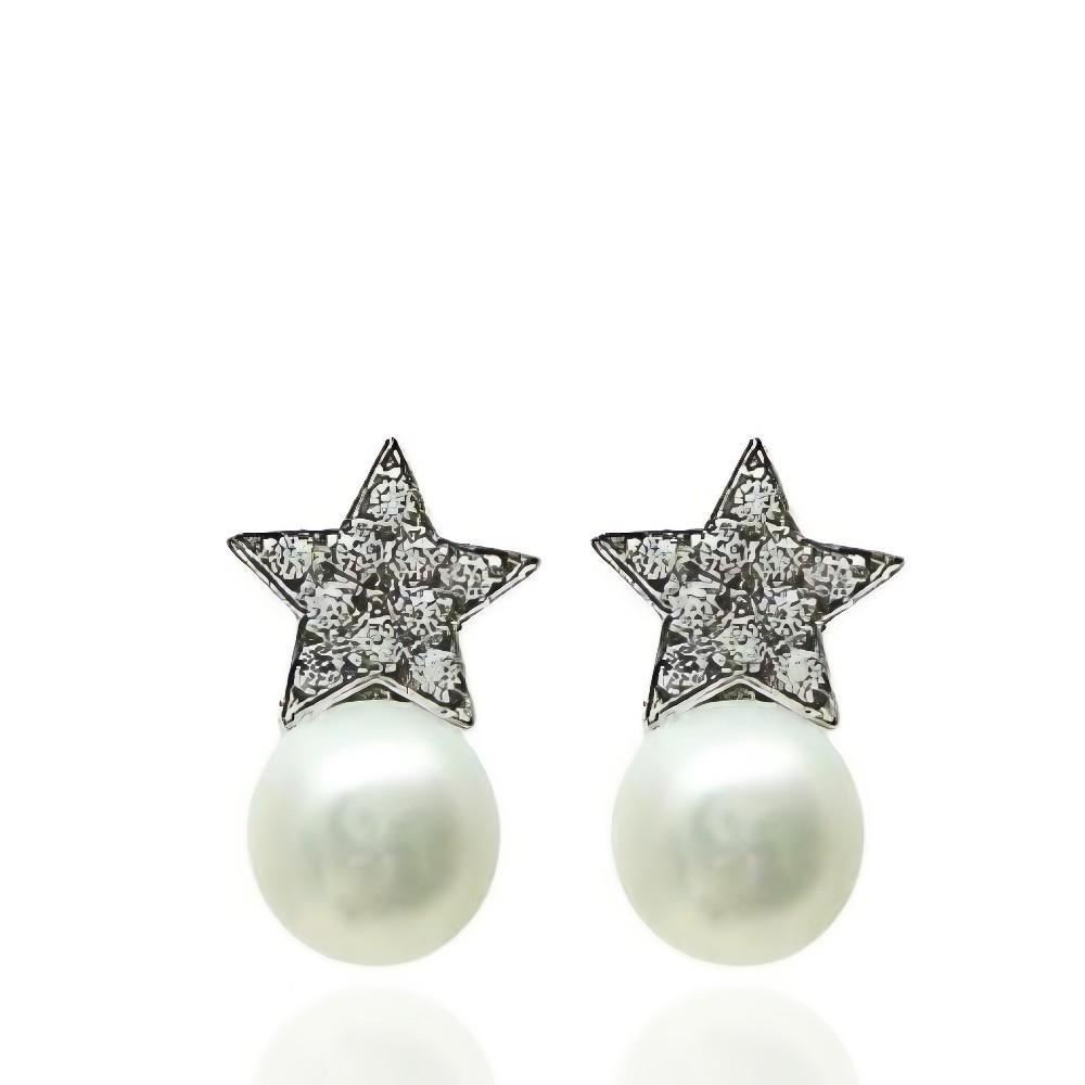 13-6780BP - PENDIENTES PERLA ESTRELLA CIRCONITA 12MM O.B. 18K