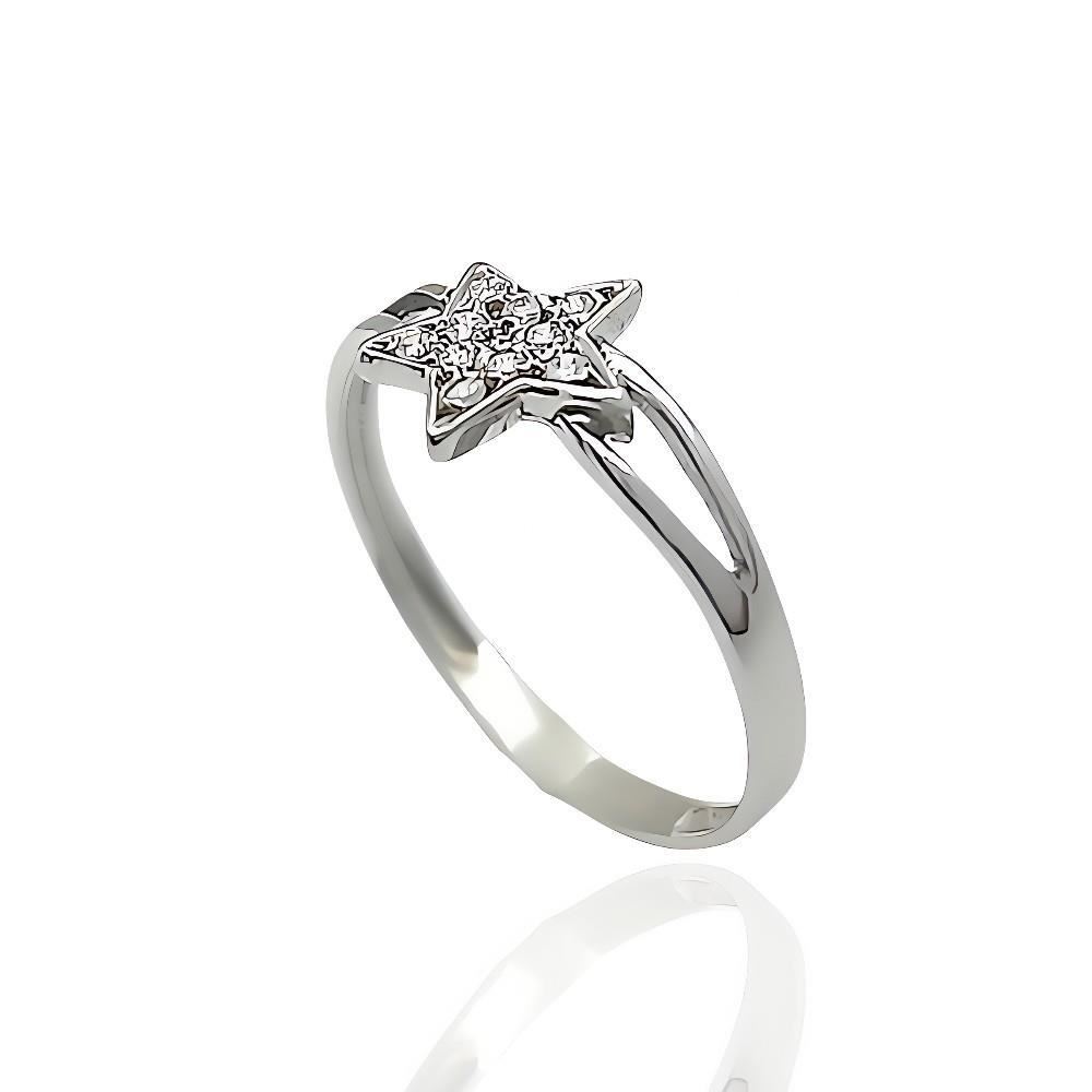 Sortija Oro Blanco de 18 quilates de estrella con circonitas, 7mm y brazo liso.