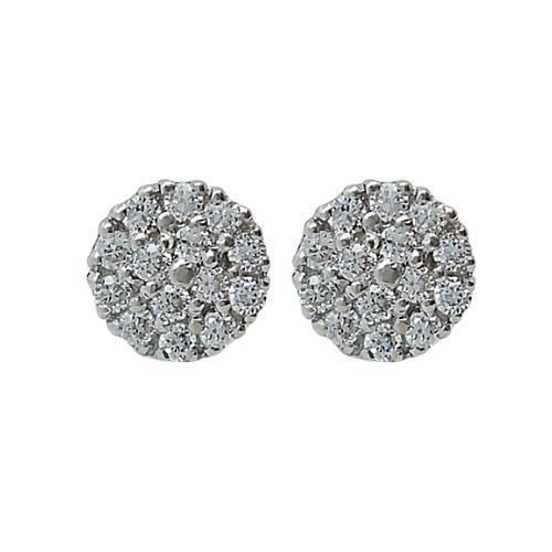Pendientes Oro Blanco de 18 quilates con circonitas, motivo redondo de 7mm de diámetro y cierre de presión. Opción de sortija a juego.