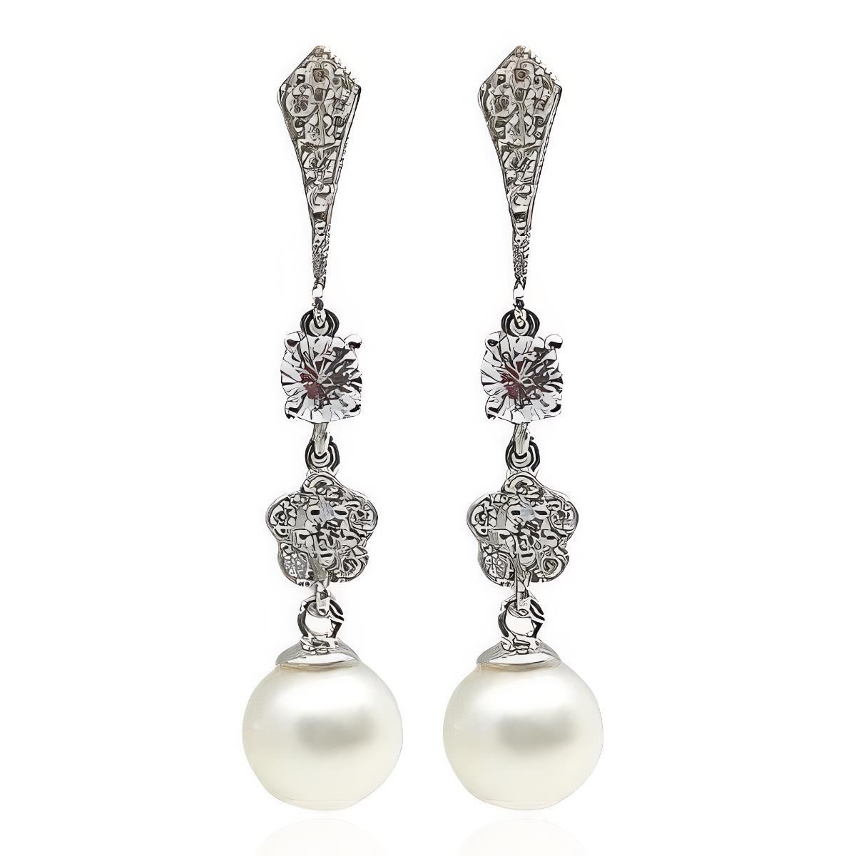 Pendientes Oro Blanco de 18 quilates de perlas y circonitas, de 40mm y cierre de presión.