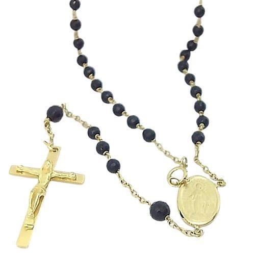 Gargantilla Rosario Oro Amarillo de 18 ktes con bolas de ónix de 3.30 y 4.35mm.