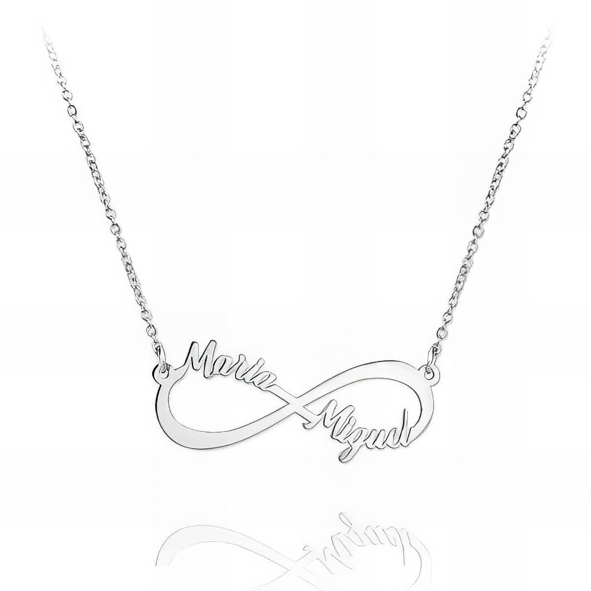 Gargantilla Plata de Ley de infinito con dos nombres, 40mm y largo de 42cm más alargador de 3cm.