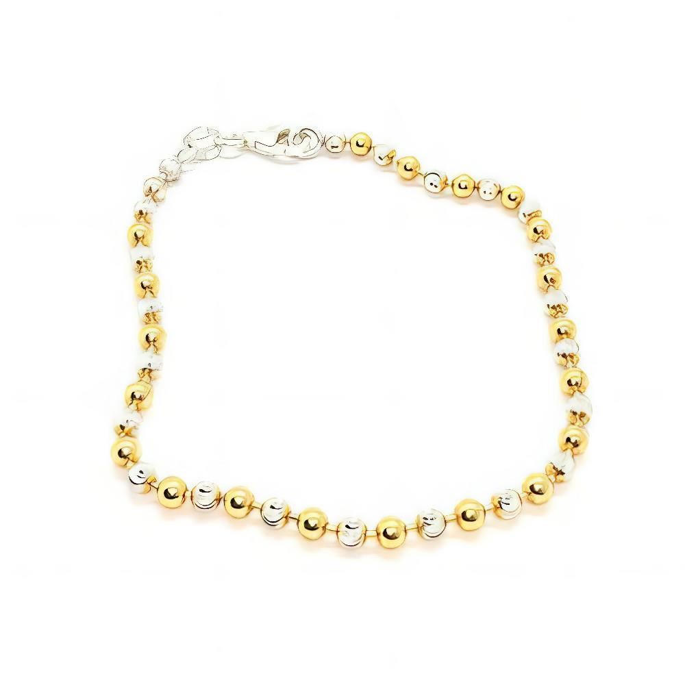 Pulsera Plata de Ley con bolas lapidadas y baño dorado, 3mm y largo de 19cm.