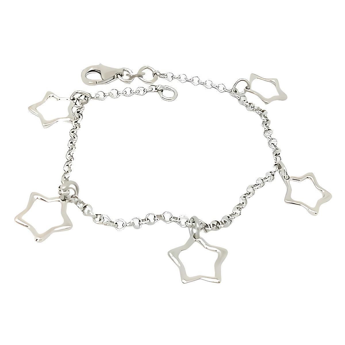 Pulsera Plata de Ley con estrellas de 10mm, largo de 19cm.