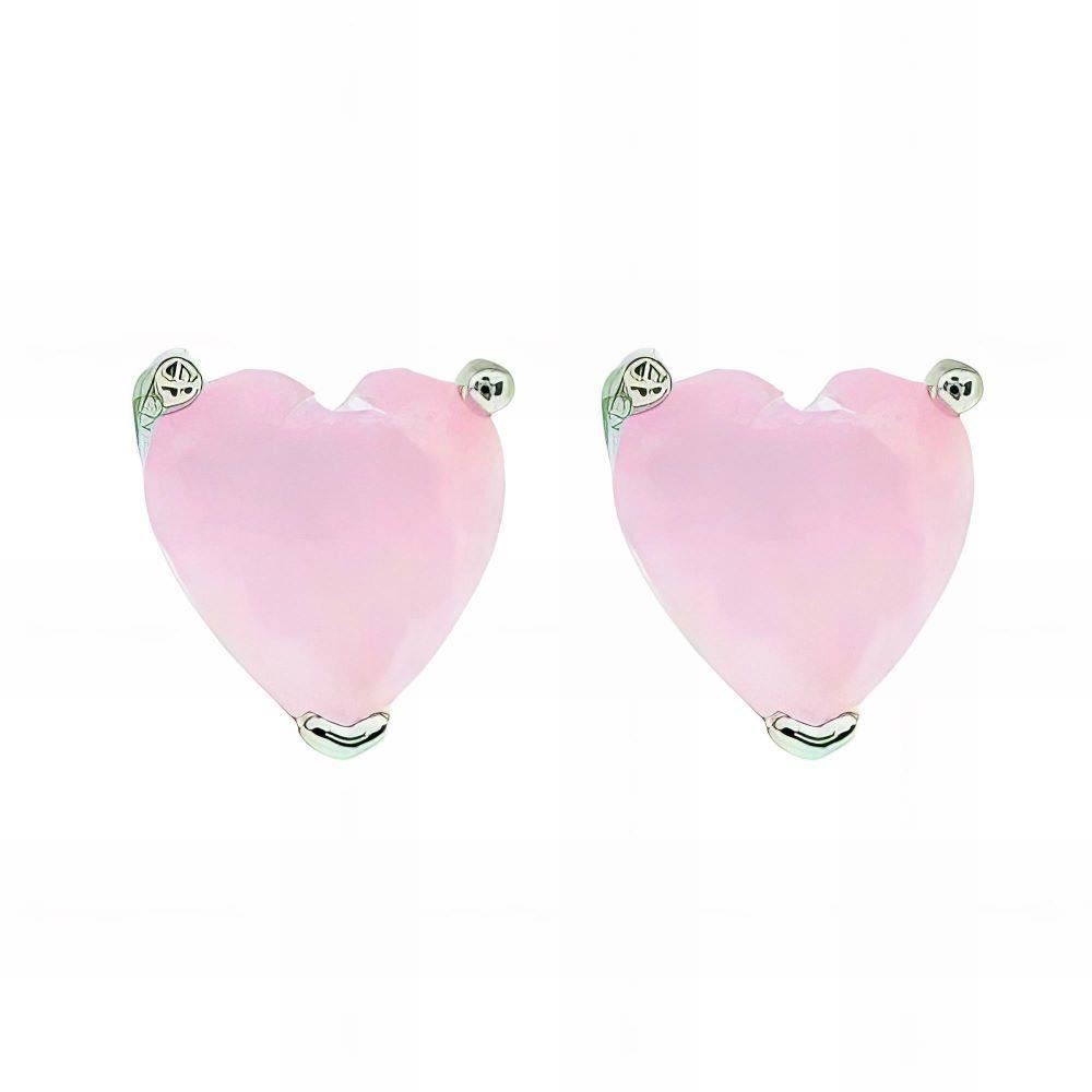 Pendientes Plata de Ley de corazón en piedra rosa, 6mm y cierre de presión.