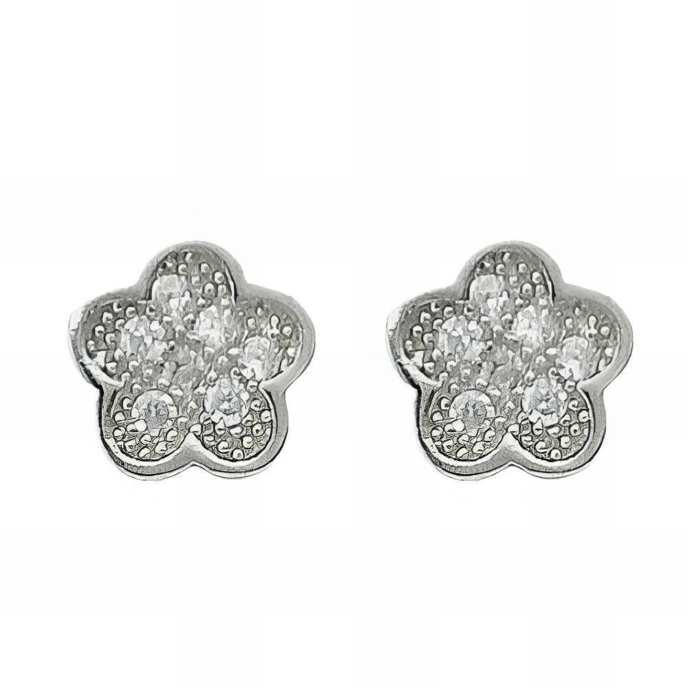 Pendientes Plata de Ley de flor con circonitas, 6mm y cierre de presión.