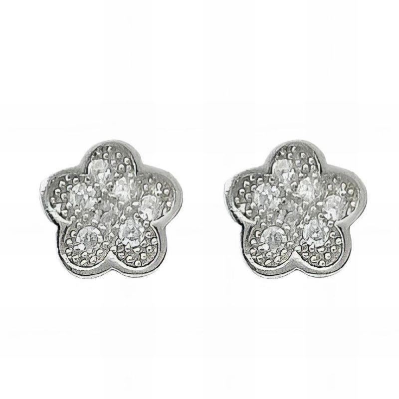 Pendientes Plata de Ley de flor con circonitas, 6mm y cierre de presión.