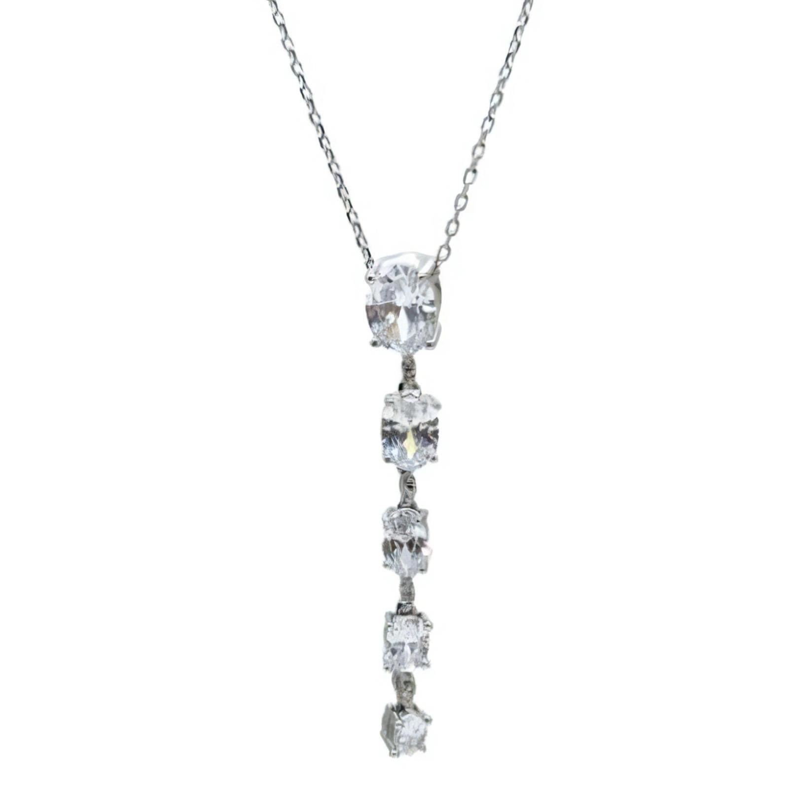 Gargantilla Plata de Ley rodiada con circonitas en disminución, 43mm, largo de 42cm con alargador de 3cm para ajustar a la media deseada.