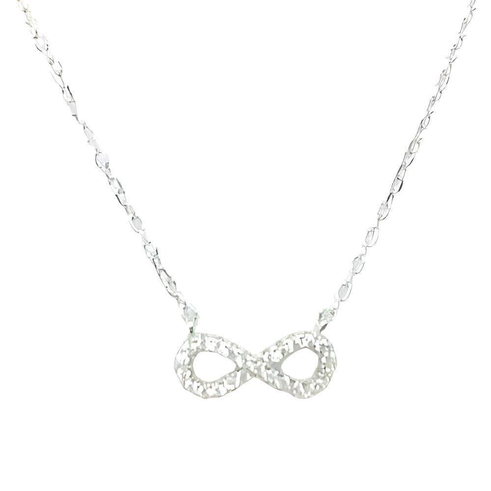 Gargantilla Plata de Ley rodiada con infinito con circonitas, de 12mm largo y 5mm de ancho, largo de 41cm con alargador de 3cm para ajustar a la medida deseada.