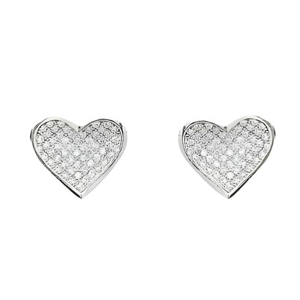 Pendientes Plata de Ley de corazón con circonitas, 11mm y cierre de presión.