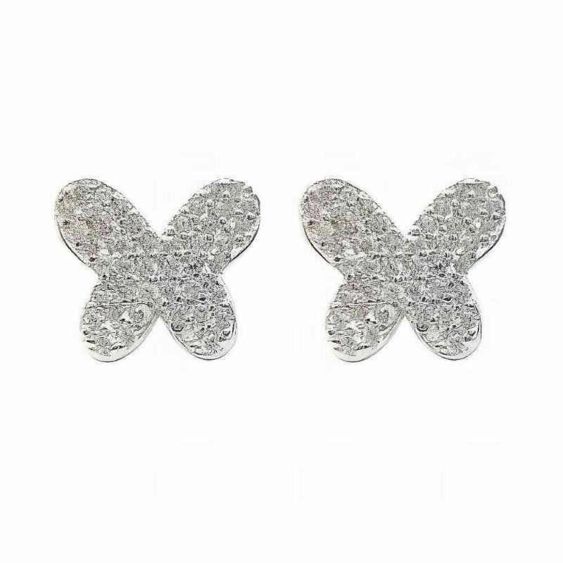Pendientes Plata de Ley de mariposa con circonitas, 9mm y cierre de presión.