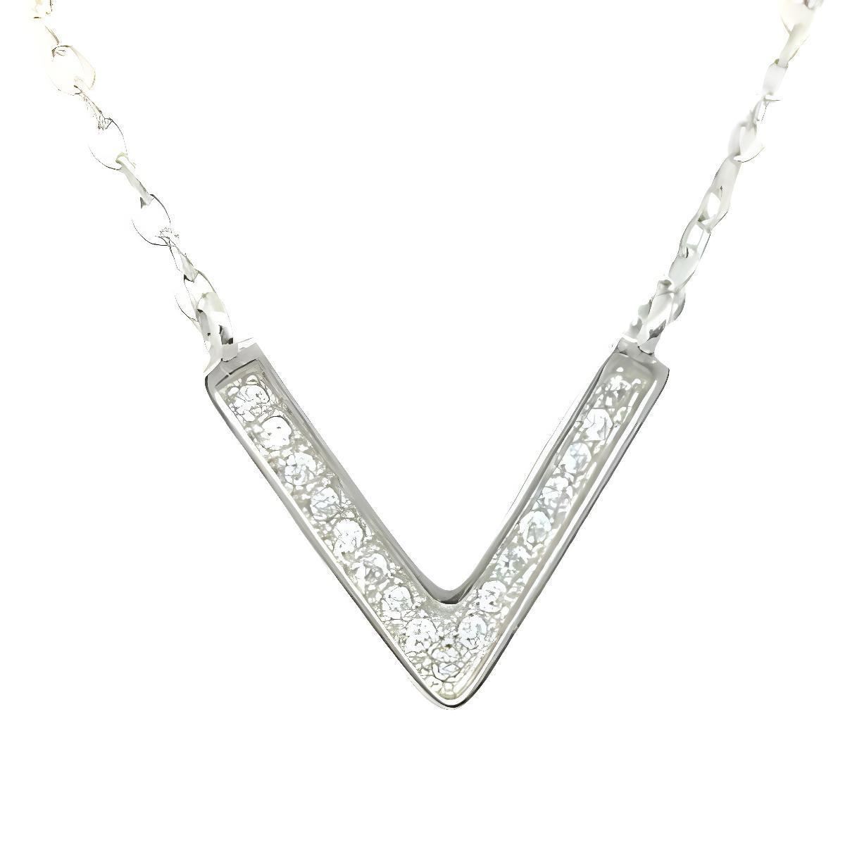 Gargantilla Plata de Ley rodiada con circonitas, motivo pico de 16mm, cadena de 42cm de largo más alargador de 3cm para poder ajustar a la media deseada.
