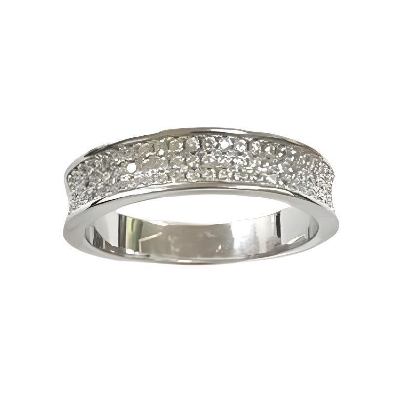 Sortija Plata de Ley con circonitas, 5.5mm de ancho y brazo en disminución.