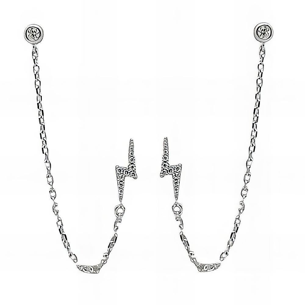 Pendientes Plata de Ley con motivo de rayo y circonitas de 14mm, cadena con chatón de 70mm y cierre de presión.