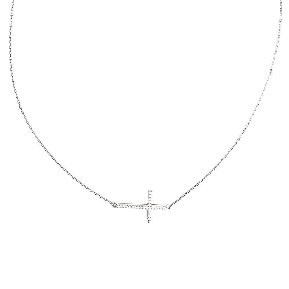 25-2113G - GARGANTILLA PLATA CRUZ CIRCONITA 20MM 42CM (ALARGADOR 3CM)