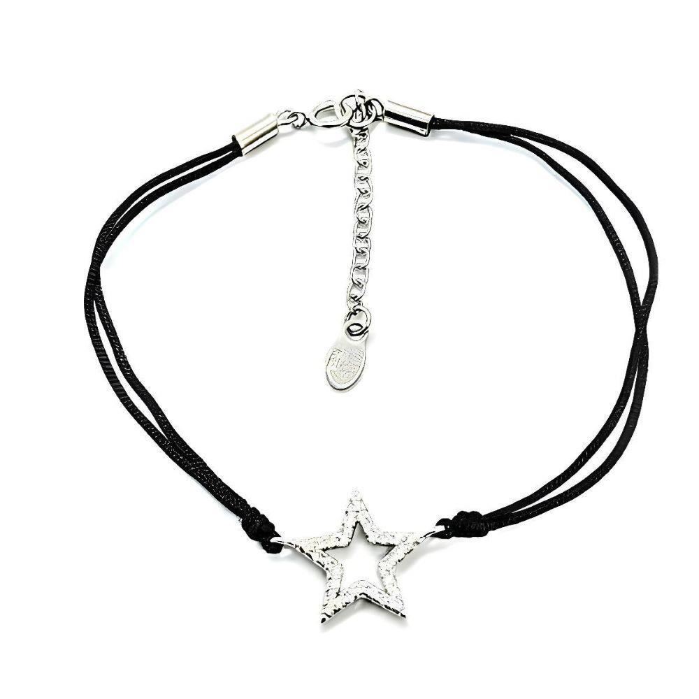 Pulsera Plata de Ley y macramé con estrella con circonitas de 14mm, largo de 17cm con alargador de 3.5cm.