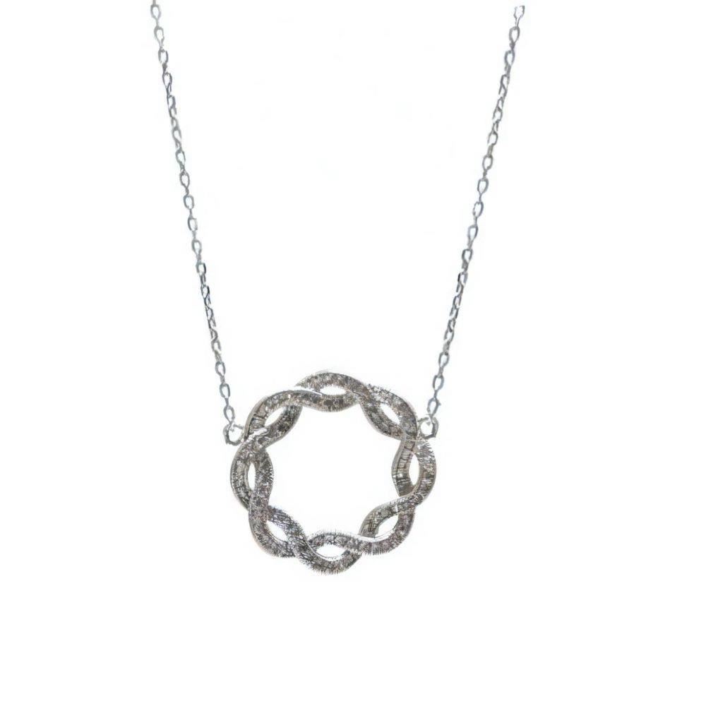 Gargantilla Plata de Ley rodiada con circonitas, largo de 41.5cm con alargador de 3cm para ajustar a la medida deseada.