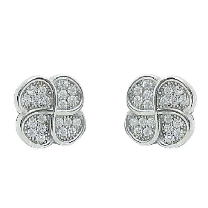 Pendientes Plata de Ley de trébol con circonitas, 10mm y cierre de presión.