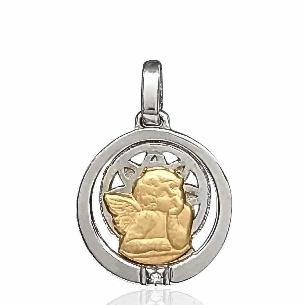 Medalla Oro Amarillo de 18 quilates y Plata de Ley de Ángel con brillante, 16mm sin contar asa.