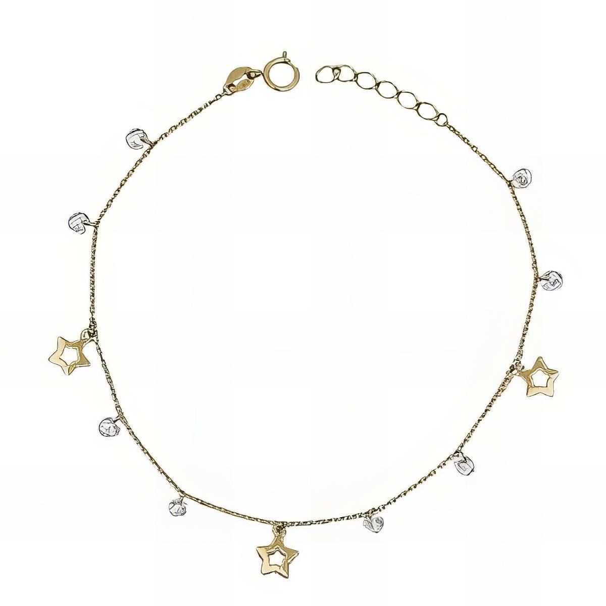 Pulsera Oro Amarillo de 18 quilates de estrellas de 5.5mm y circonitas de 3mm, largo de 17cm con alargador de 2cm para ajustar a la medida deseada.