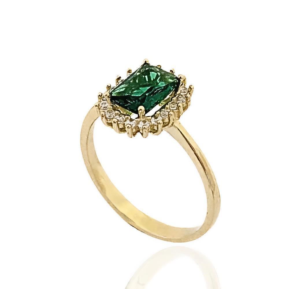 Sortija Oro Amarillo de 18 quilates con piedra Esmeralda y circonitas, 11mm.