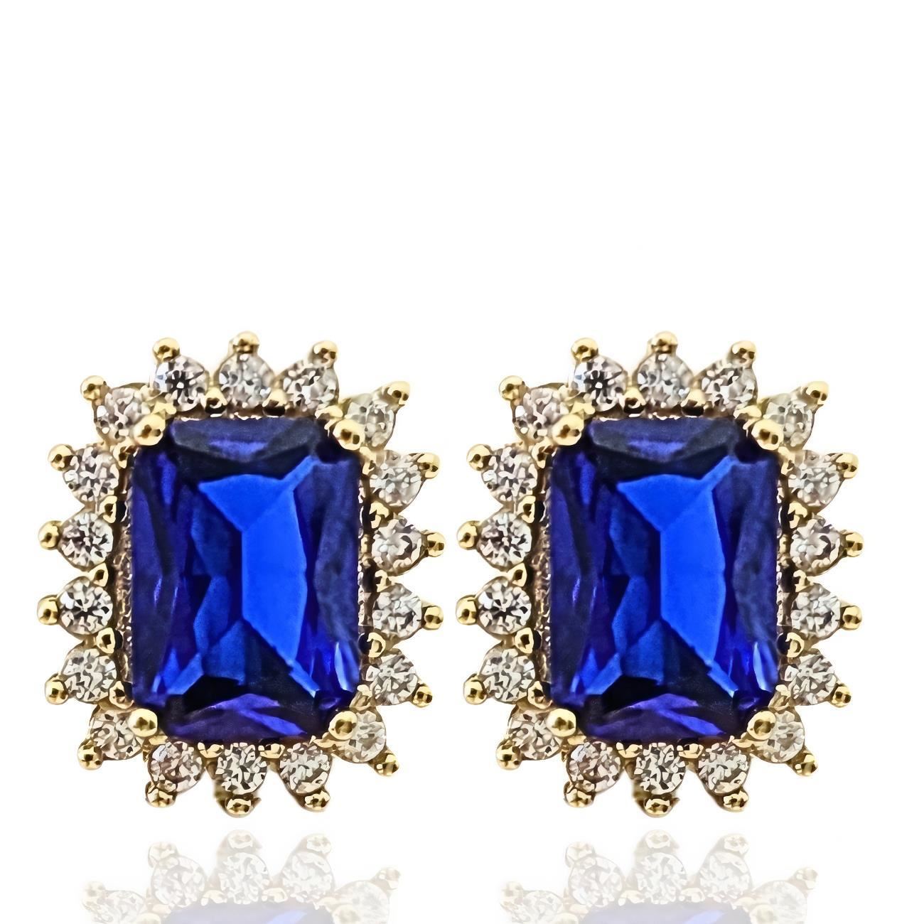 Pendientes Oro Amarillo de 18 quilates con piedra Zafiro y circonitas, medida de 11mm.