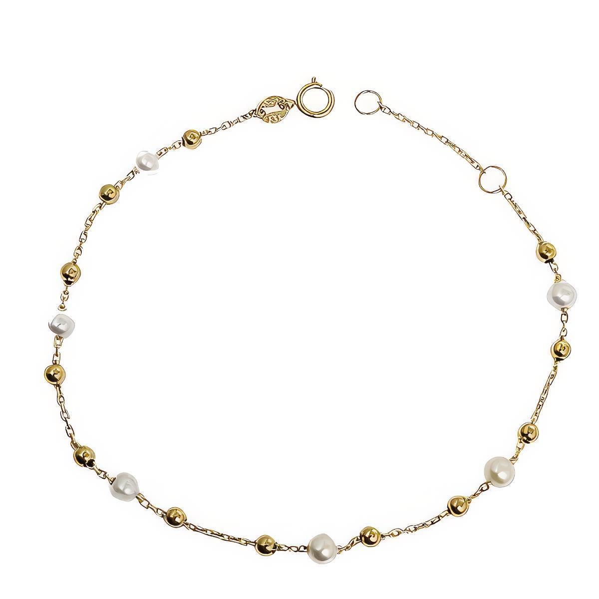 28-2261 - PULSERA PERLAS-BOLAS 18.5CM (ANILLA A 2CM) 18K