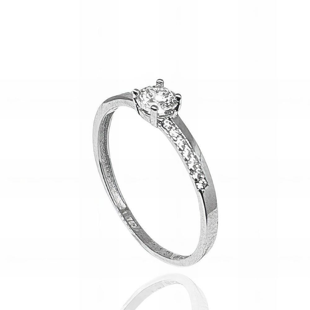 Sortija Oro Blanco de 18 quilates con circonita de 3.70mm y brazo con circonitas.