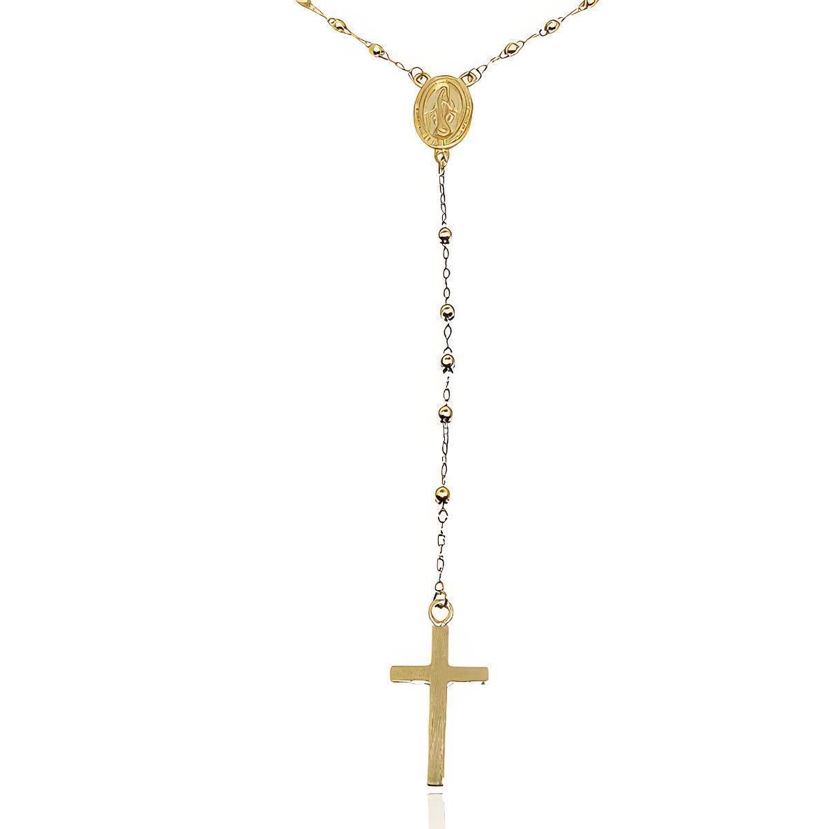 Gargantilla Oro Amarillo de 18 quilates de rosario con bolas de 4mm, largo de 50cm con cadena con cruz 9cm.