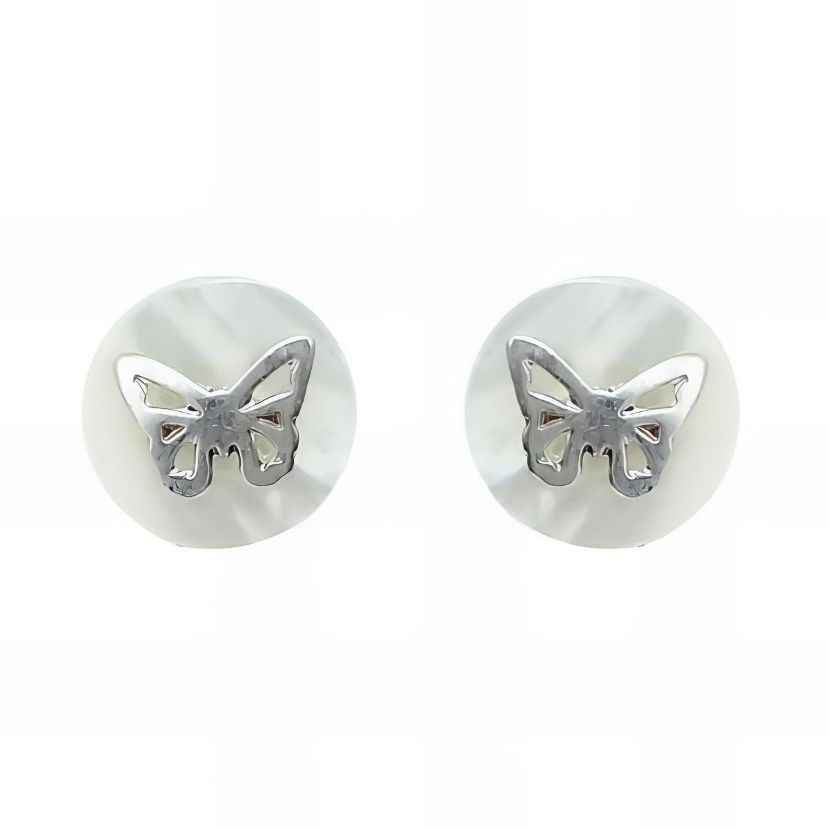 Pendientes Plata de Ley de nácar con mariposa, 9mm y cierre de presión.