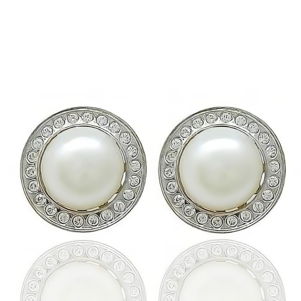 Pendientes Oro Blanco y Amarillo de 18 quilates con perla de 9mm y cerco con circonitas, cierre de presion.