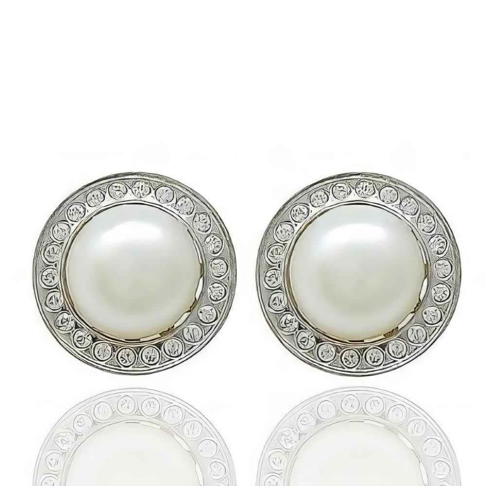 Pendientes Oro Blanco y Amarillo de 18 quilates con perla de 9mm y cerco con circonitas, cierre de presion.