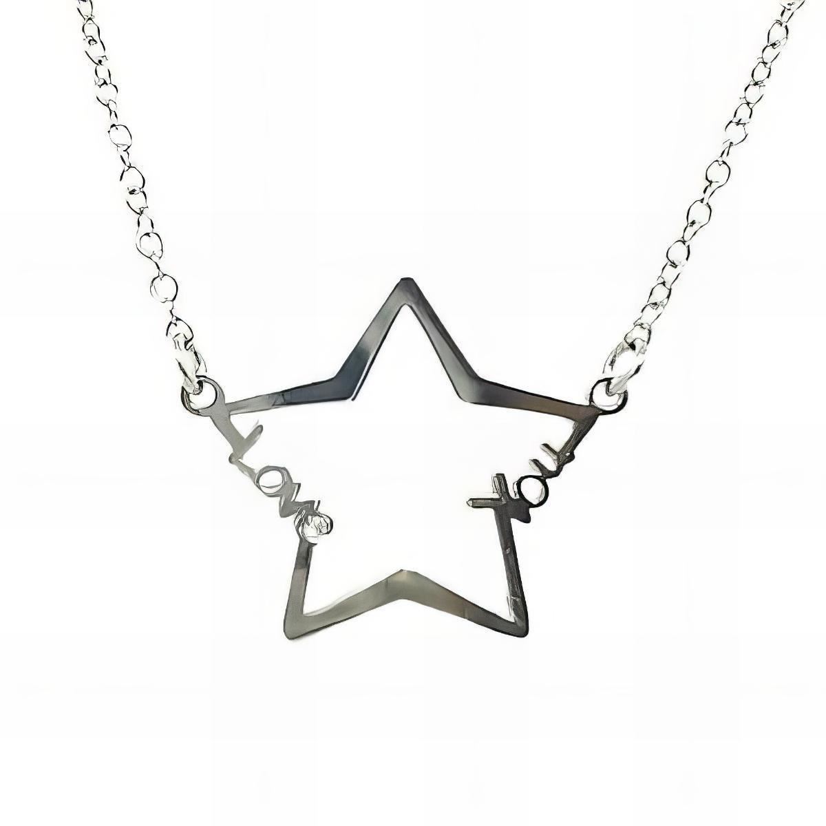 Gargantilla Plata de Ley rodiada, con motivo de estrella y letrero "love you" en cadema de 40 cm. de largo + alargador de 5cm.