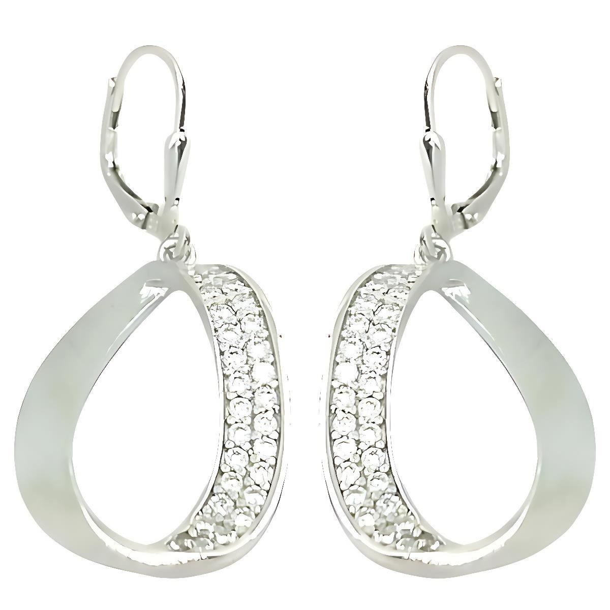 Pendientes Plata de Ley en mate y brillo con circonitas, 40mm y cierre francés.