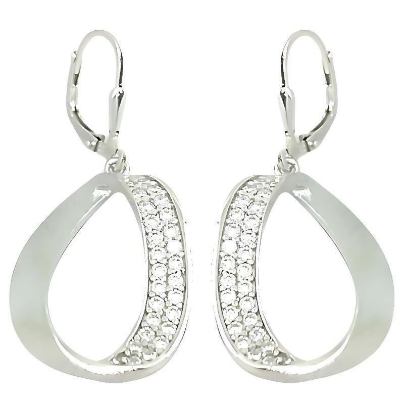 Pendientes Plata de Ley en mate y brillo con circonitas, 40mm y cierre francés.