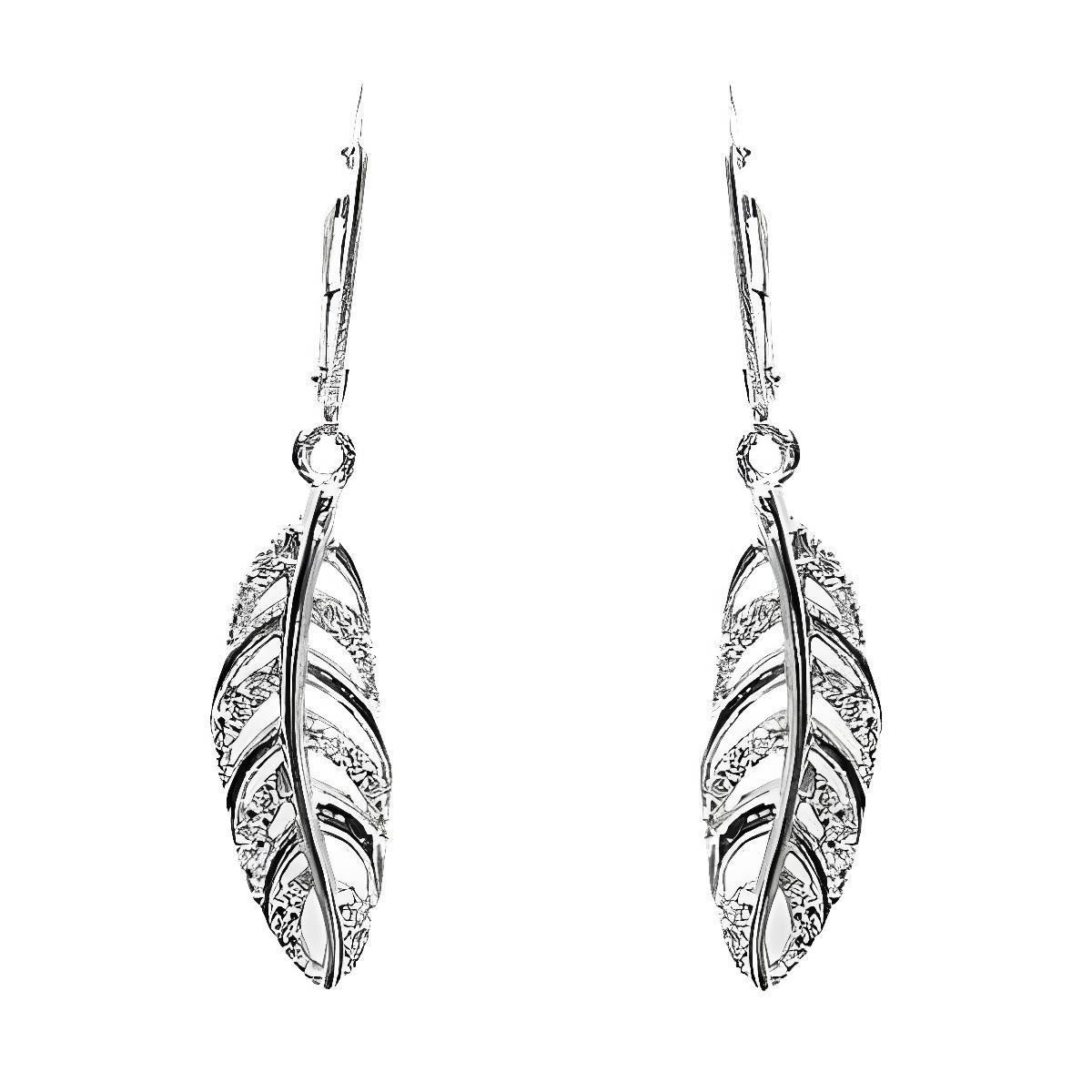 Pendientes Plata de Ley de hoja con circonitas, 38mm y cierre francés.