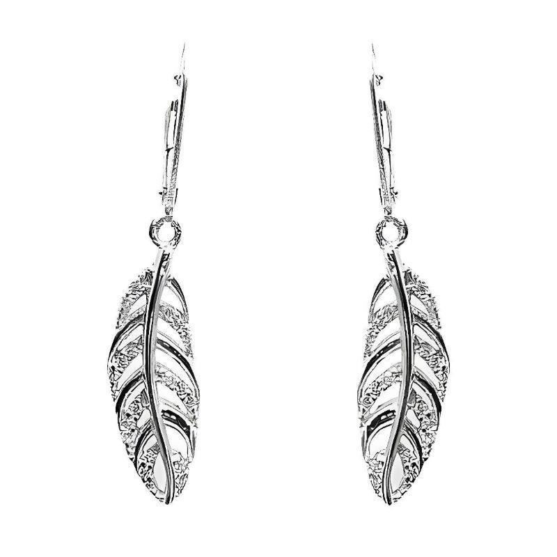 Pendientes Plata de Ley de hoja con circonitas, 38mm y cierre francés.