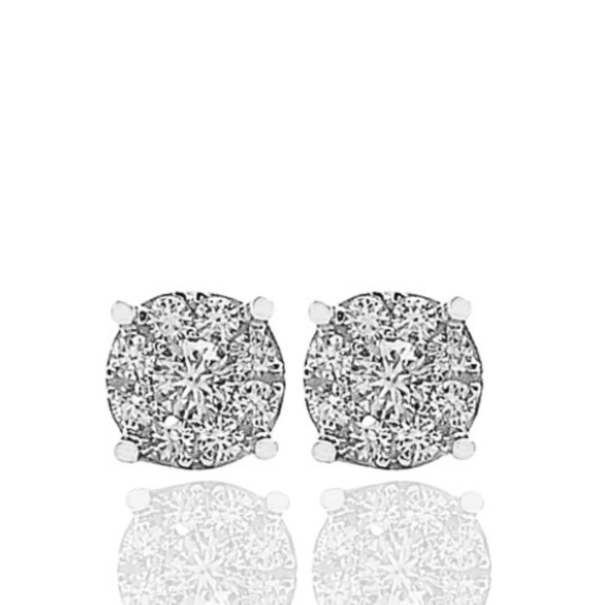 Pendientes Oro Blanco de 18 quilates con circonitas, medida de 5mm diámetro y cierre de presión.