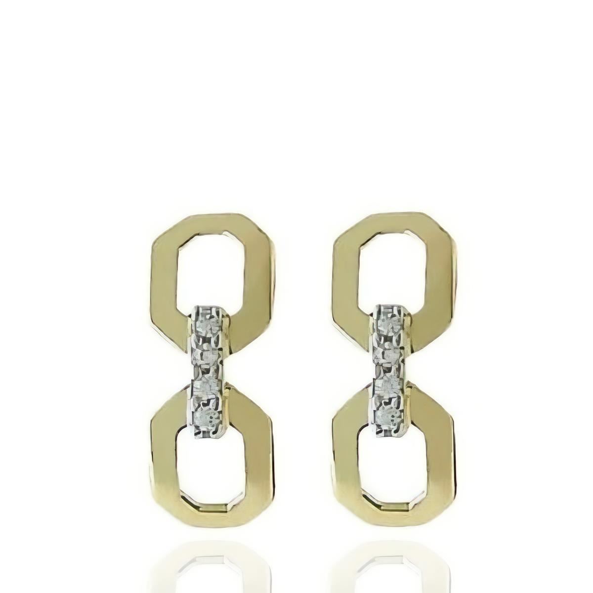 Pendientes Oro Amarillo y Blanco de 18 quilates con circonitas, medida de 15mm alto y cierre de presión.