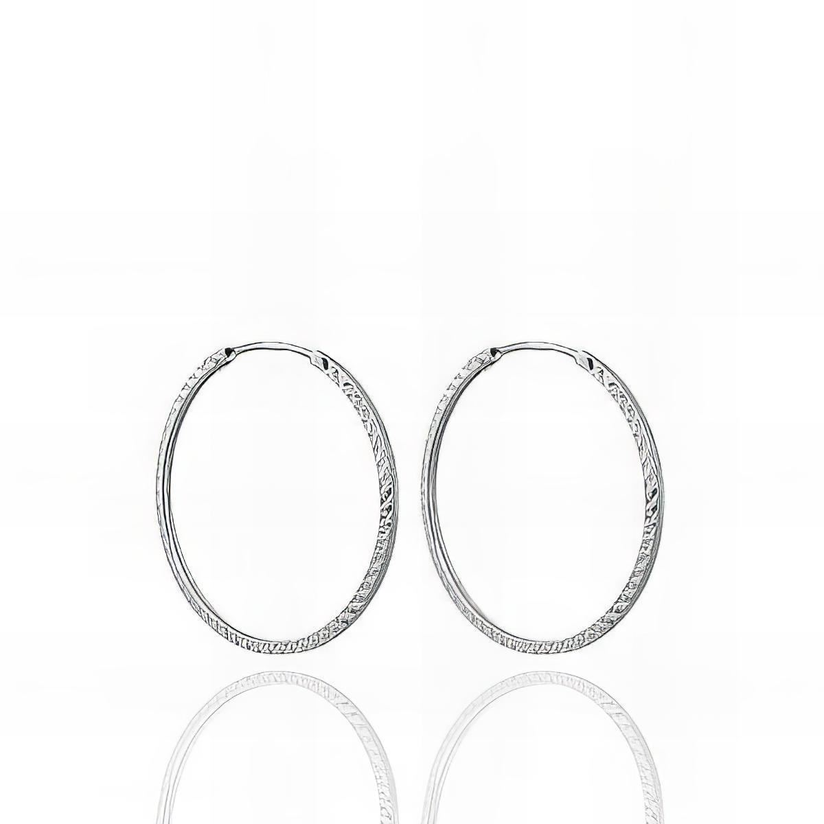 Criollas Oro Blanco de 18 quilates lapidadas, grosor de 1mm y diámetro de 14mm.