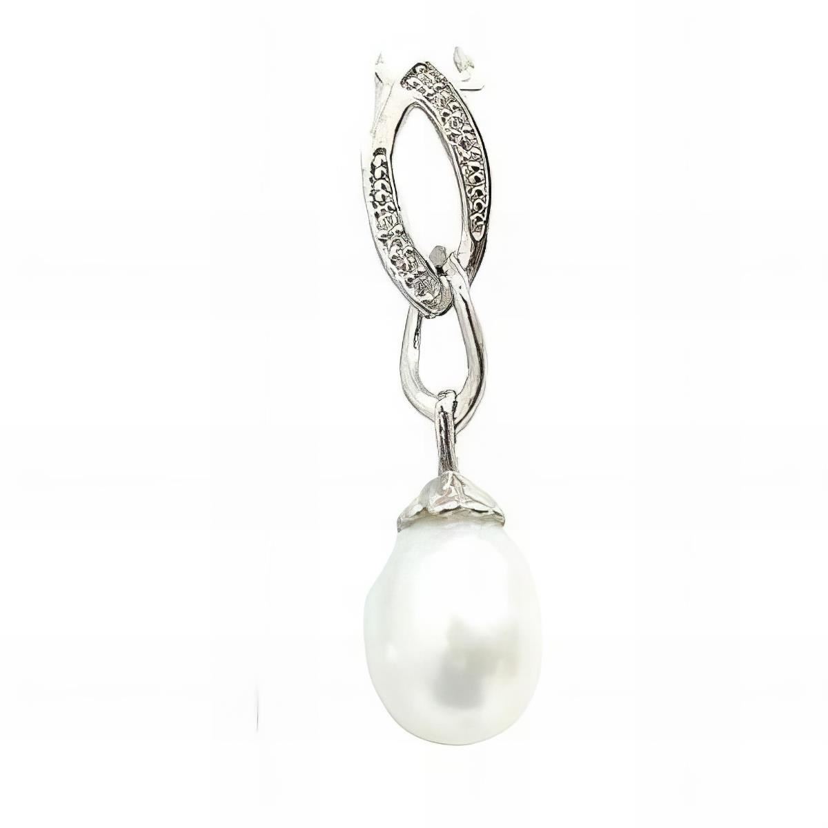 Colgante Plata de Ley rodiada con perla y circonita, 31mm sin contar asa.