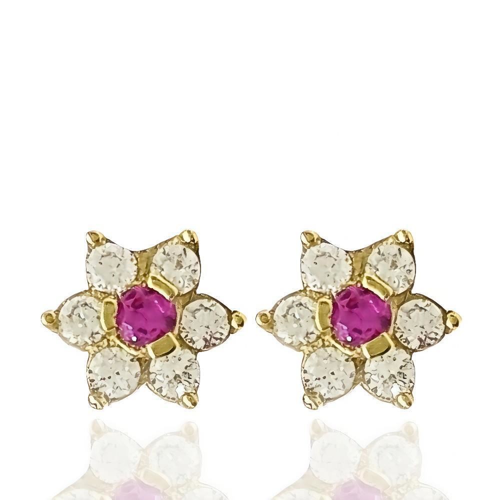 Conjunto de Pendientes y Colgante de Oro Amarillo de 18 quilates de rosetón con circonitas y piedra color, 5mm y cierre de presión.