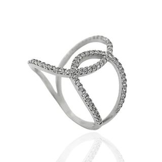 Sortija Oro Blanco de 18 quilates con circonitas, de 18mm de ancho en disminución.