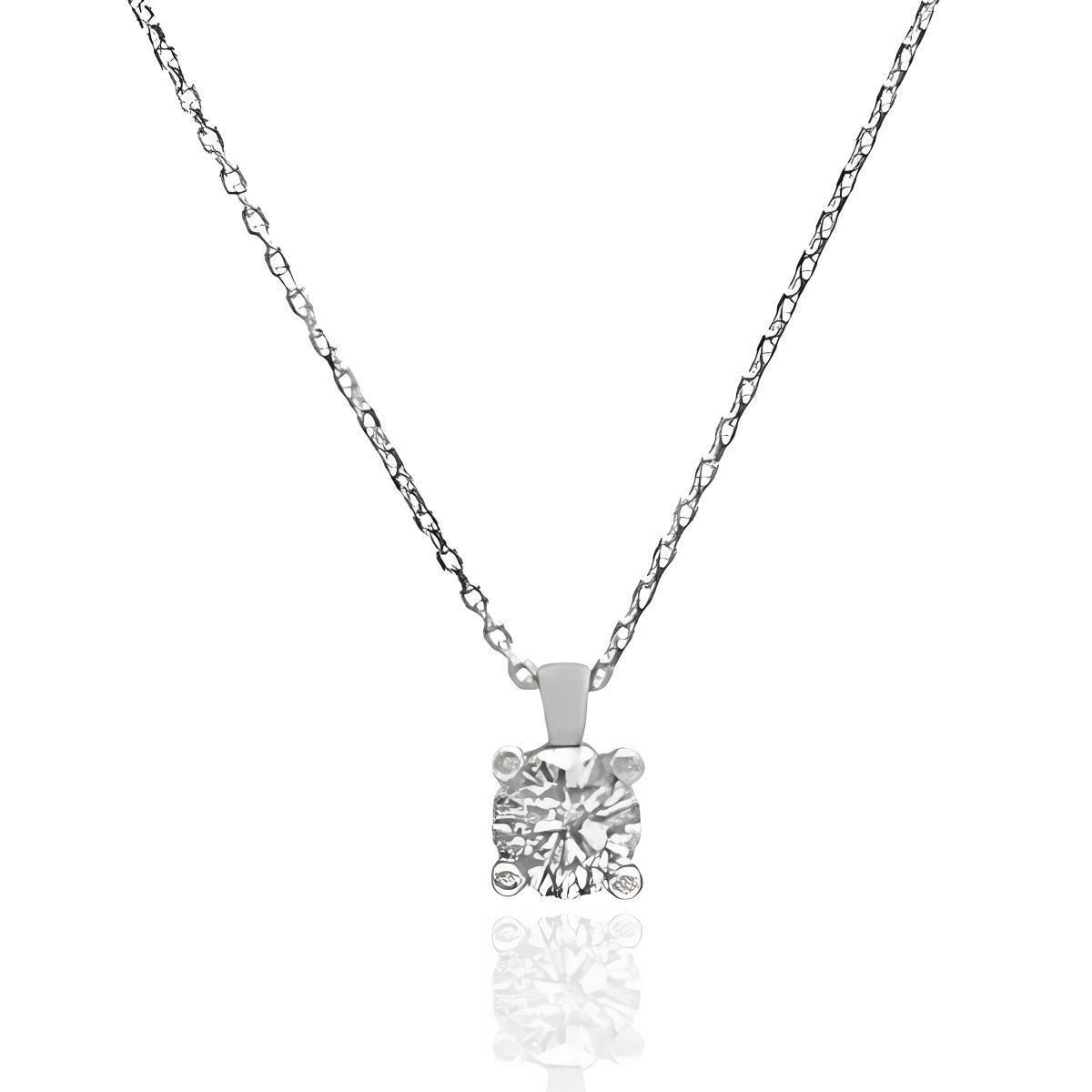 Gargantilla Oro Blanco de 18 quilates circonita con garras de 5mm, largo de 42cm con alargador de 3.5cm para ajustar a la medida deseada.