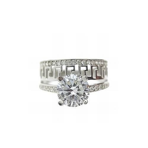 Sortija Plata de Ley con greca y circonitas, 10mm en disminución.