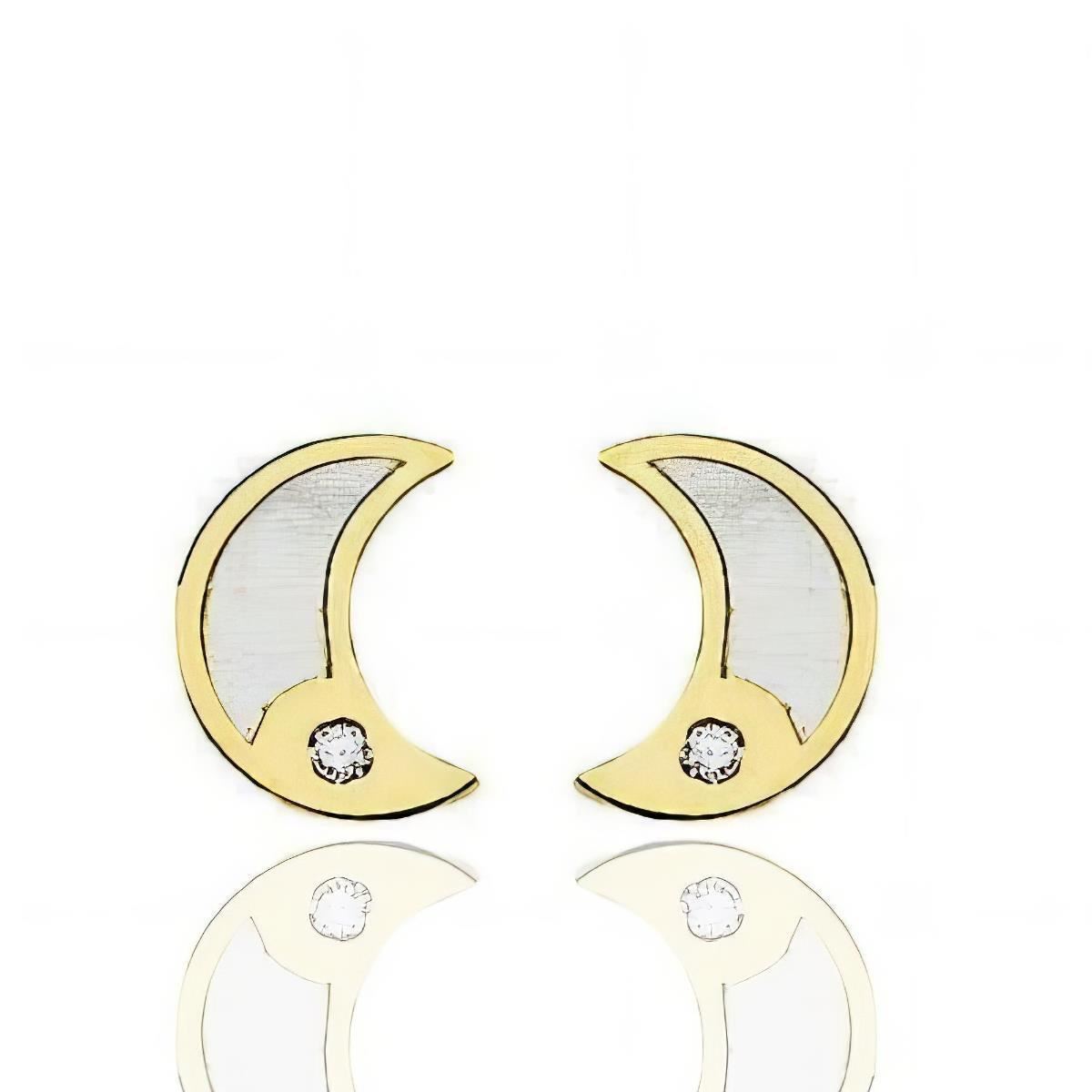 Pendientes Oro Amarillo de 18 quilates de luna con nácar y circonitas, 8mm y cierre de rosca.