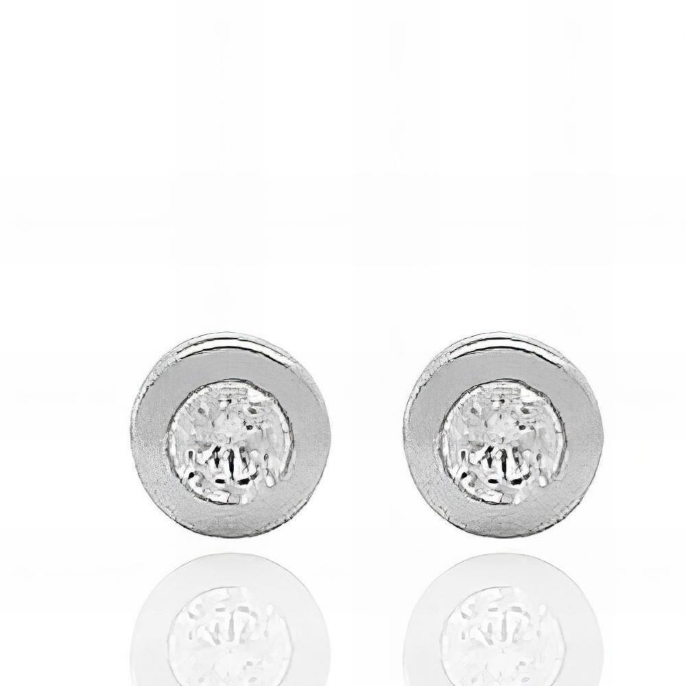 Pendientes Oro Blanco de 18 quilates de chatón de 6.5mm y circonita de 4mm, cierre de presión.