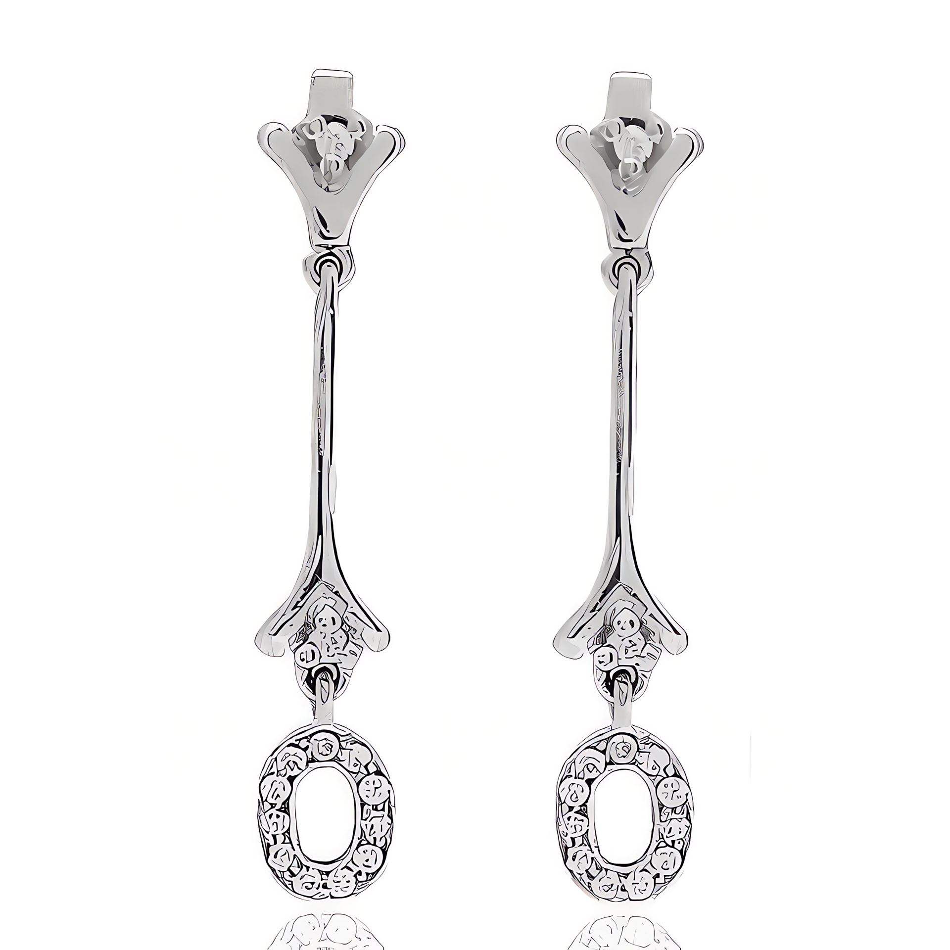 Pendientes Oro Blanco de 18 quilates con circonitas, media de 35mm de largo y cierre de presión. Opción de gargantilla a juego.
