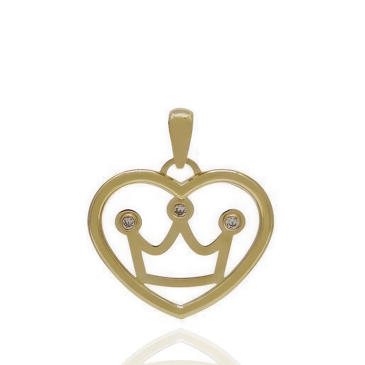 Colgante de Oro Amarillo de 18 quilates de corazón con corona y circonitas, 16mm sin contar asa.